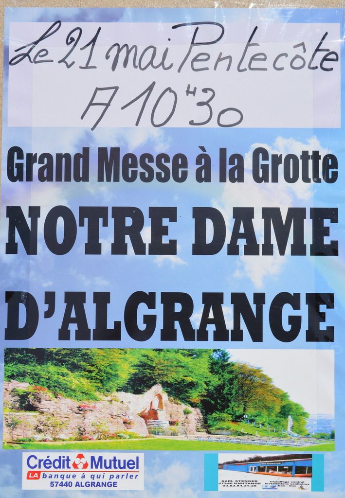 En 2018, la messe de la Pentecôte à la grotte Notre-Dame d'Algrange a eu lieu le 21 mai, devant près de 200 personnes. Moins de monde que d'habitude malgré le beau temps et le soleil présent......