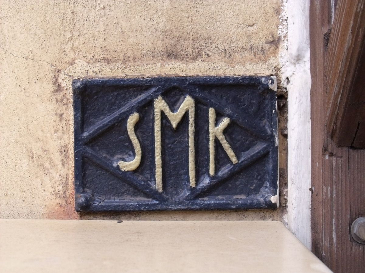 Une plaque SMK à la gauche de la porte d'entrée, montre que cette maison était la propriété de l'usine SMK....