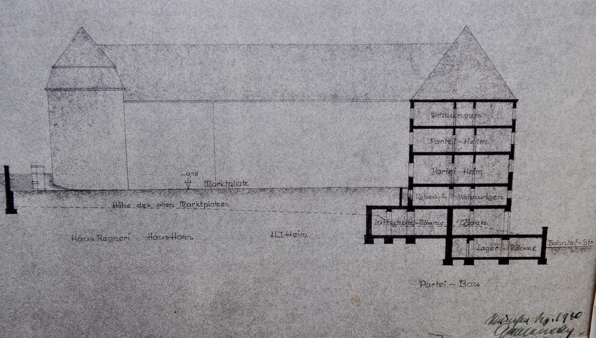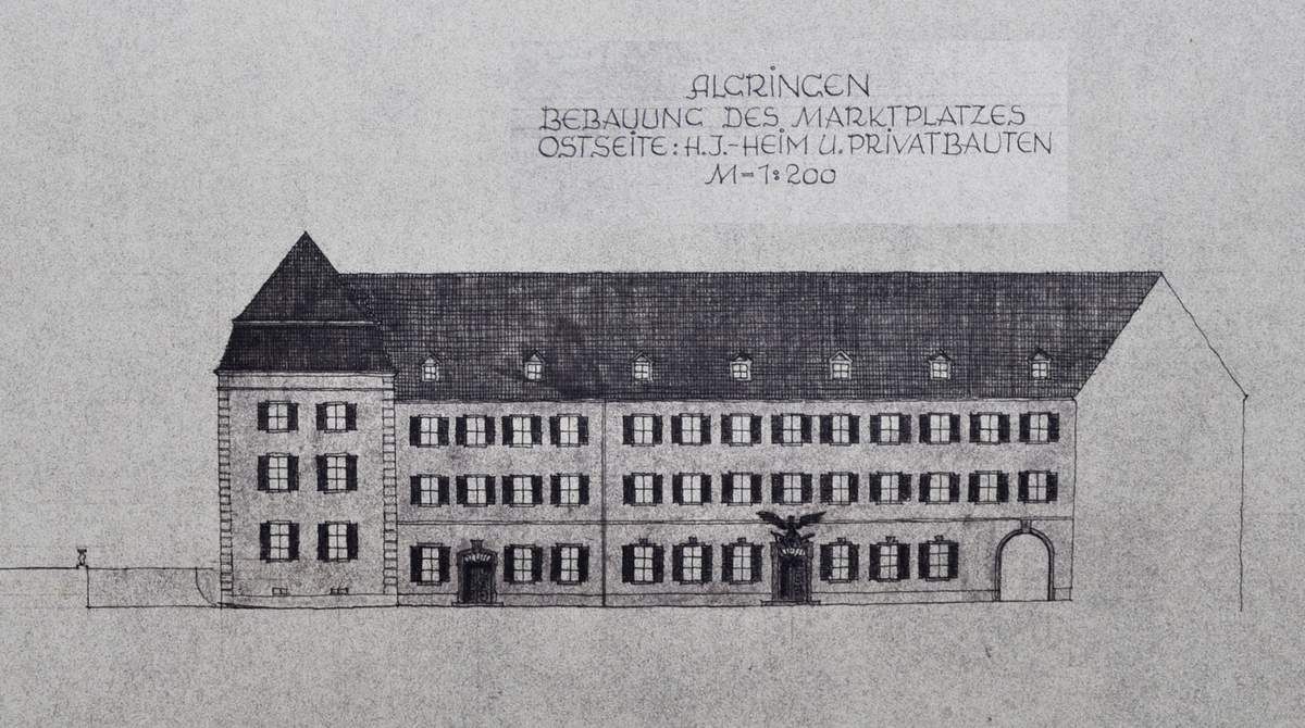 Les Allemands avaient déjà tout prévu lors de leur retour à Algrange. Des plans étaient conçus pour modifier le paysage de la place du marché. Un grand bâtiment abritant la mairie, les logements de fonctions (Regneri, Hann, Heim) un hôtel à la place de la Croix d'Or. Tout un bouleversement pour ce quartier......