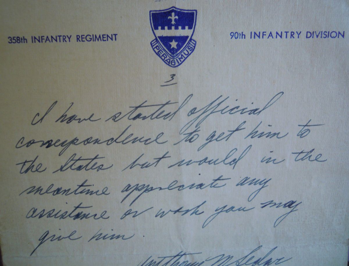 Il fut blessé et rapatrié en Angleterre, où il rencontra même le général De Gaulle. Le 10 août 1945, il reçoit une médaille de l'armée américaine avec cette lettre.........