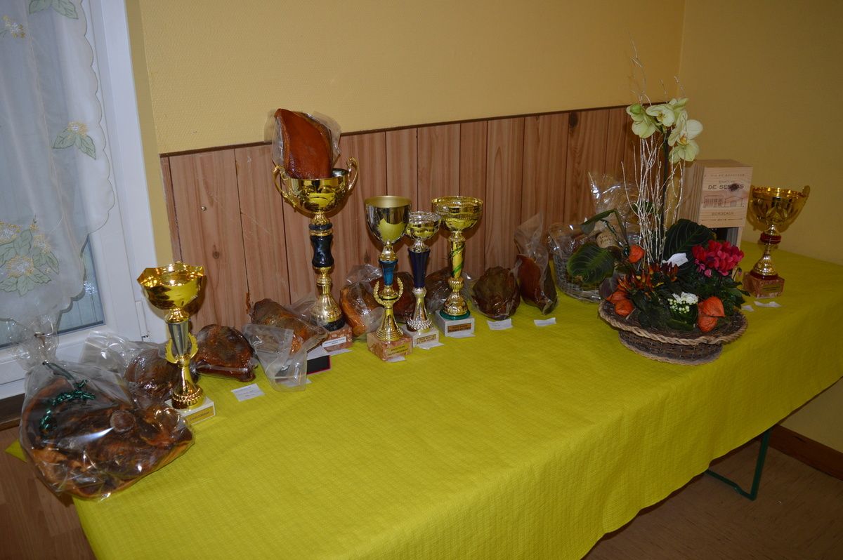 Puis ce fut le tour de la remise des prix avec coupes, noix de jambon, vin et autres cadeaux.......