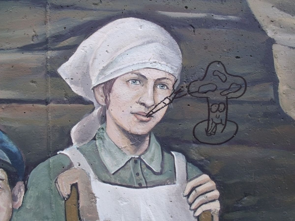 La fresque avait tenu 20 années avant d'être restaurée, usée par le temps, les intempéries et le sel des hivers. Mais dans la nuit de vendredi à samedi, un ou des individus sans scrupules, sans civisme, ne connaissant rien à l'art ni au passé d'Algrange a (ou ont) tagé la fresque du haut mur en y mettant des croix gammées, des propos racistes et des pétards dans la bouche de certains personnages...