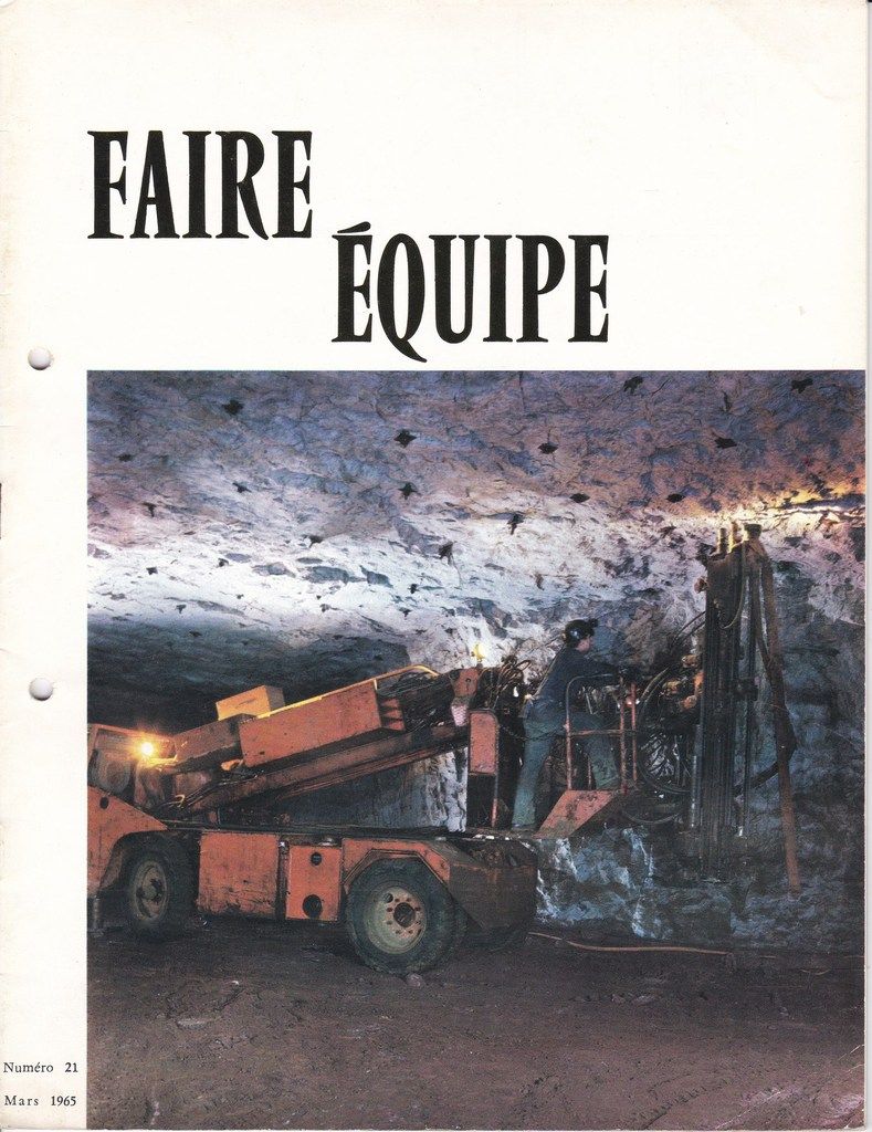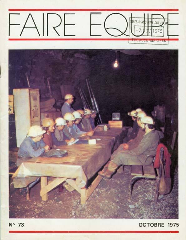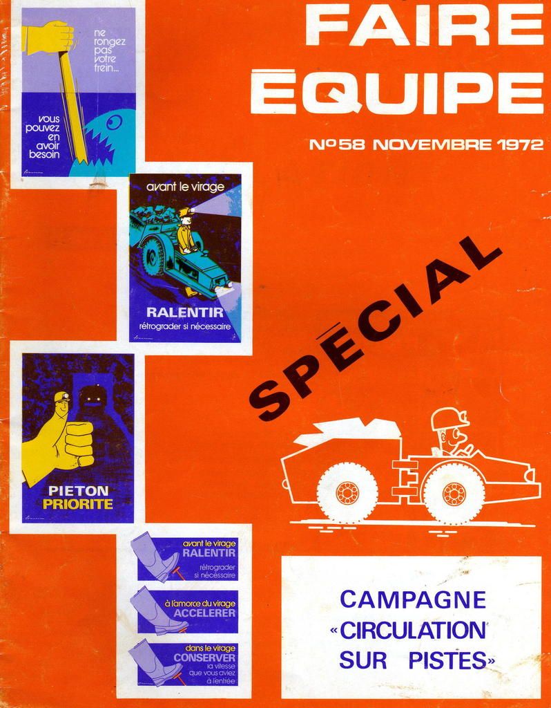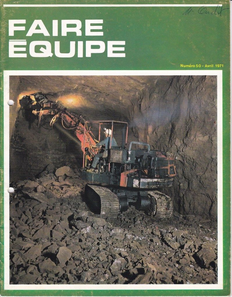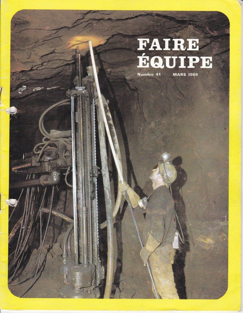 A partir de janvier 1961, des revues spécialisées sur la sécurité dans les mines de fer, comme " FAIRE EQUIPE " faisaient leur apparition pour informer et aider les mineurs sur les risques dans la mine et pour éviter d'y laisser sa vie.....