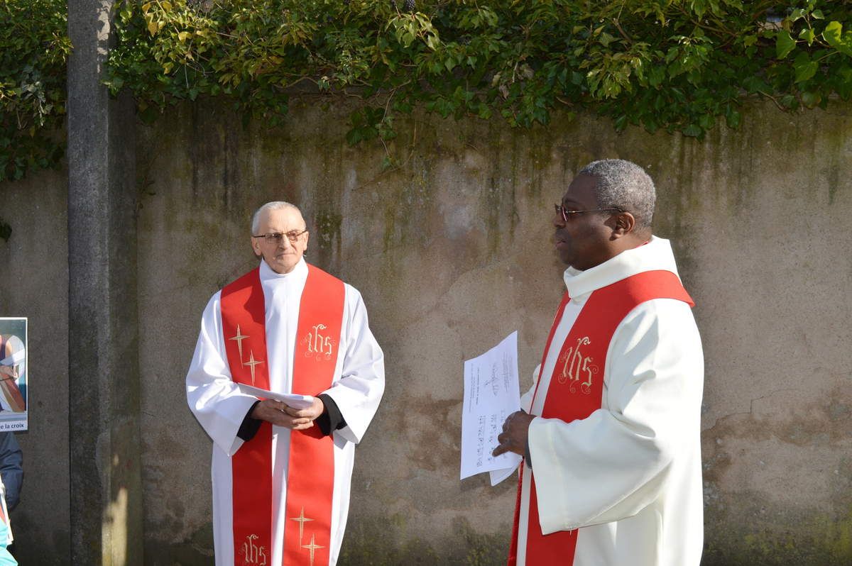 Le Conseil de Fabrique, le curé et le président de la grotte ont fait faire aux enfants et aux accompagnateurs le tour de l'église avec une halte dans la montée de la côte,