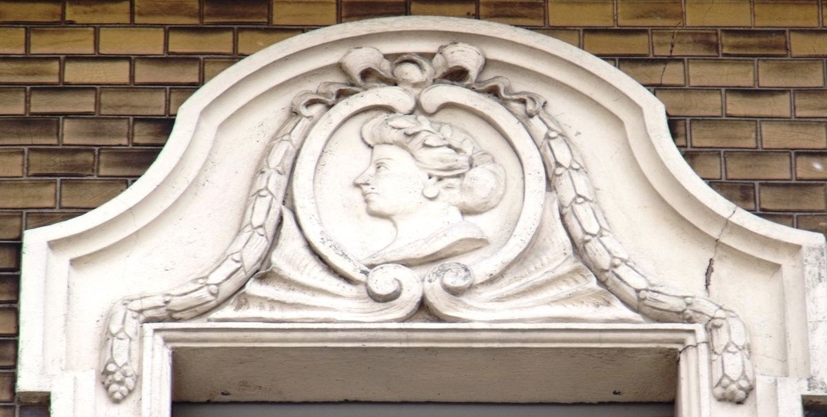 Construit au début du siècle dernier, sous l'annexion, cet immeuble comporte quelques sculptures sur sa façade....