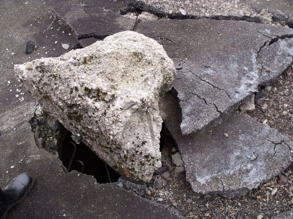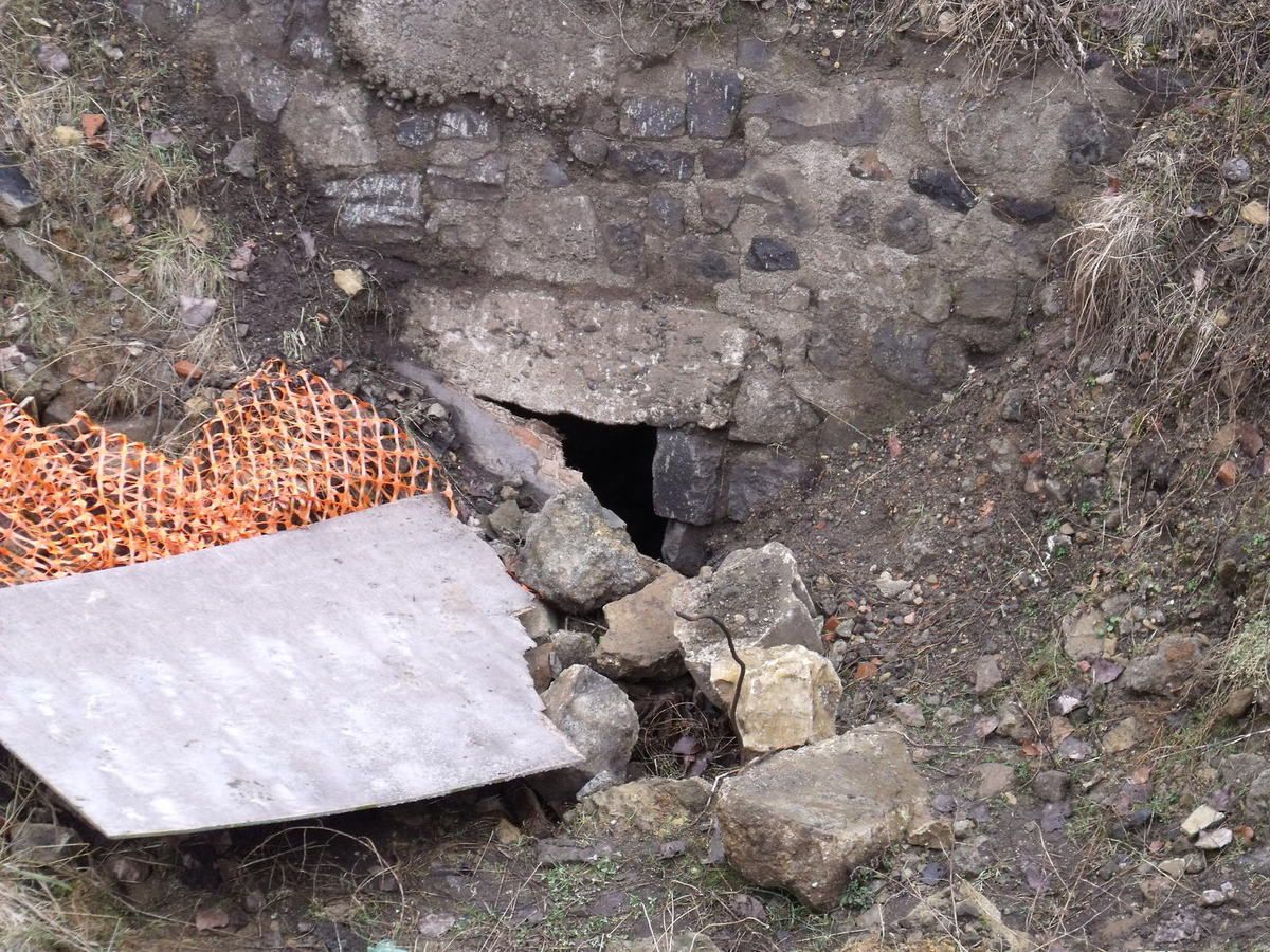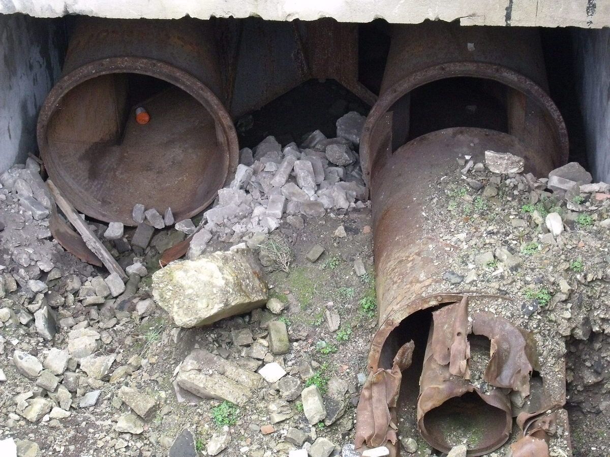 Puis, tout au long de notre visite nous verrons les différents regards qui ont eu leur tampon enlevé (volés pour la ferraille) et qui sont ouverts (risques pour le promeneur) ou avec une faible épaisseur de béton ou bouché avec quelques pierres...