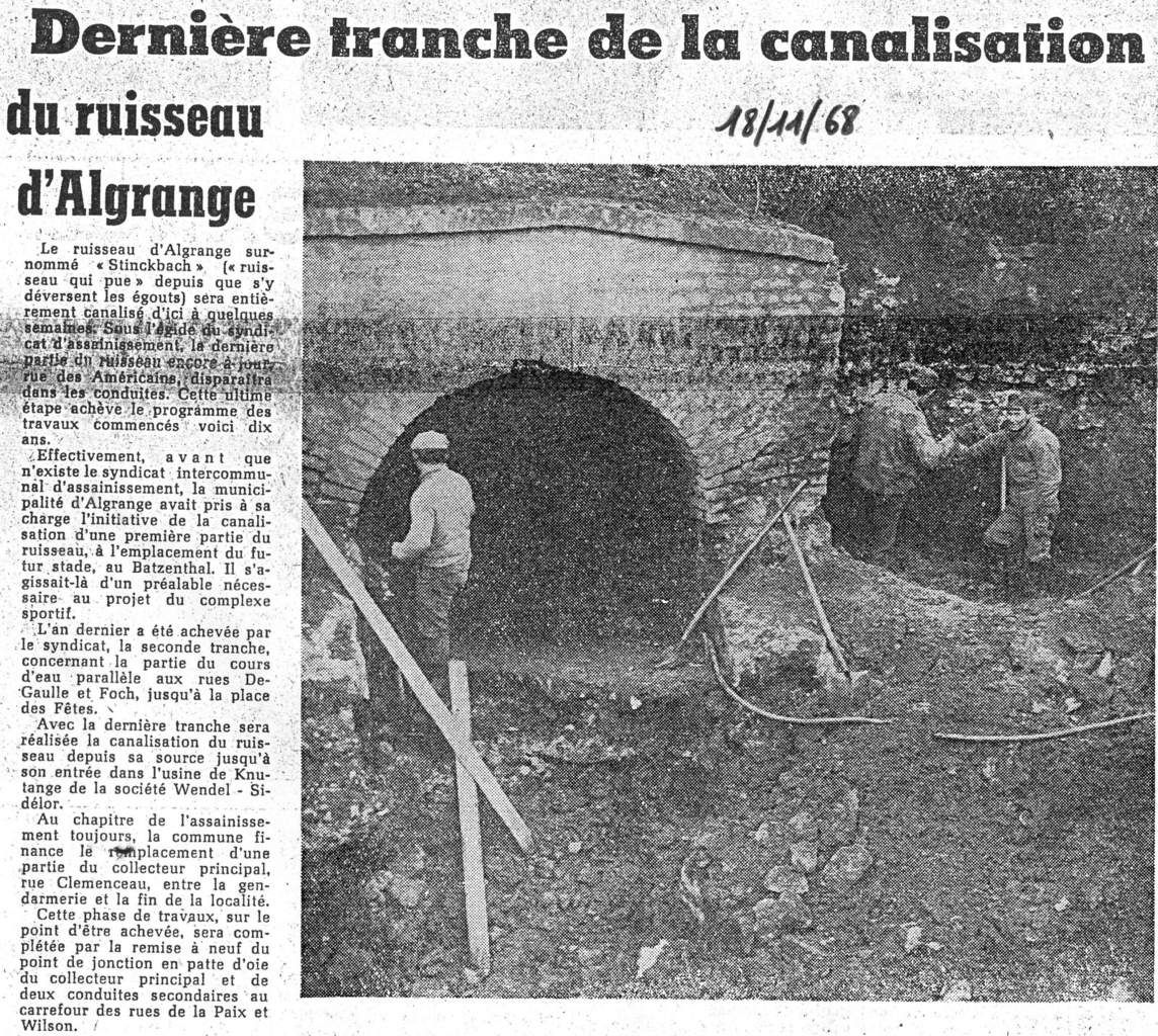 Le 2 mars 2012, avec quelques personnes j'ai eu le droit à une visite commentée du site de La Paix (côté usine du bas) à partir de l'Etincelle jusqu'à derrière la menuiserie PVC HIPPERT. Pour cela plusieurs personnes telles que M. ROVINALTI ou JOSIEN ont donné des explications précises sur l'emplacement du ruisseau d'Algrange et nous ont montré telles les catacombes d'Egypte des choses insoupçonnées sous nos pieds..