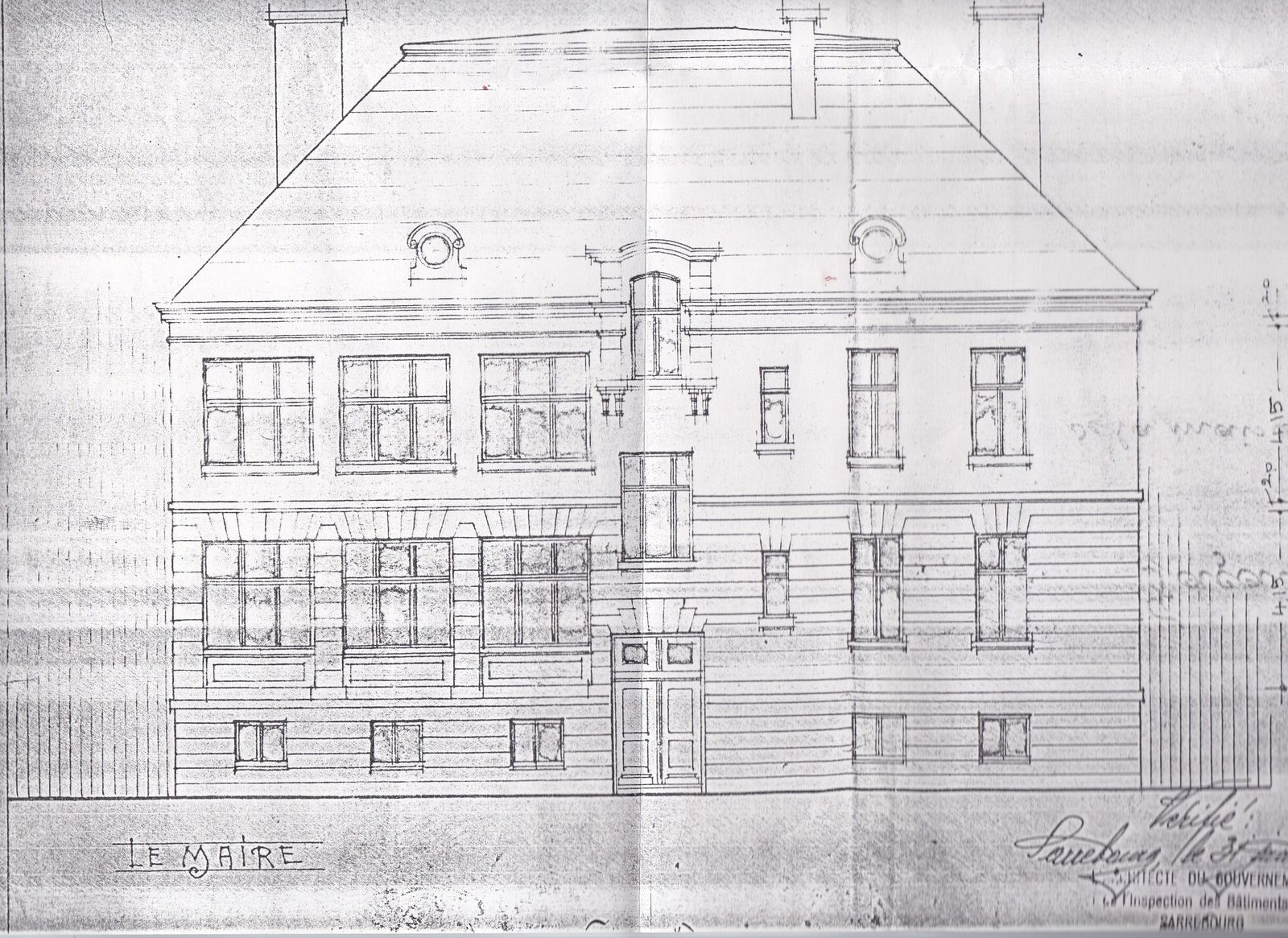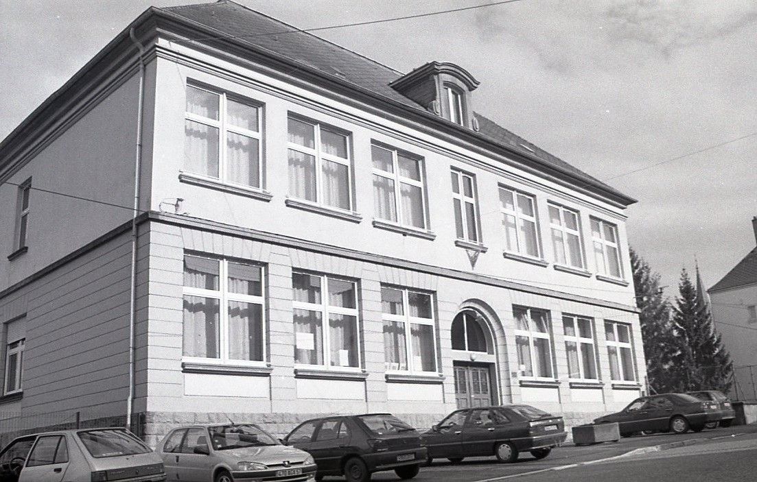 Une première école fut construite au n°5 Friedenstrasse (devenue ensuite Wilson) en 1900, en même temps que celle de la mairie. Elle fut une école de filles jusqu’en 1933, puis elle devint une école de garçons suite au transfert avec l’école face à l’église catholique.