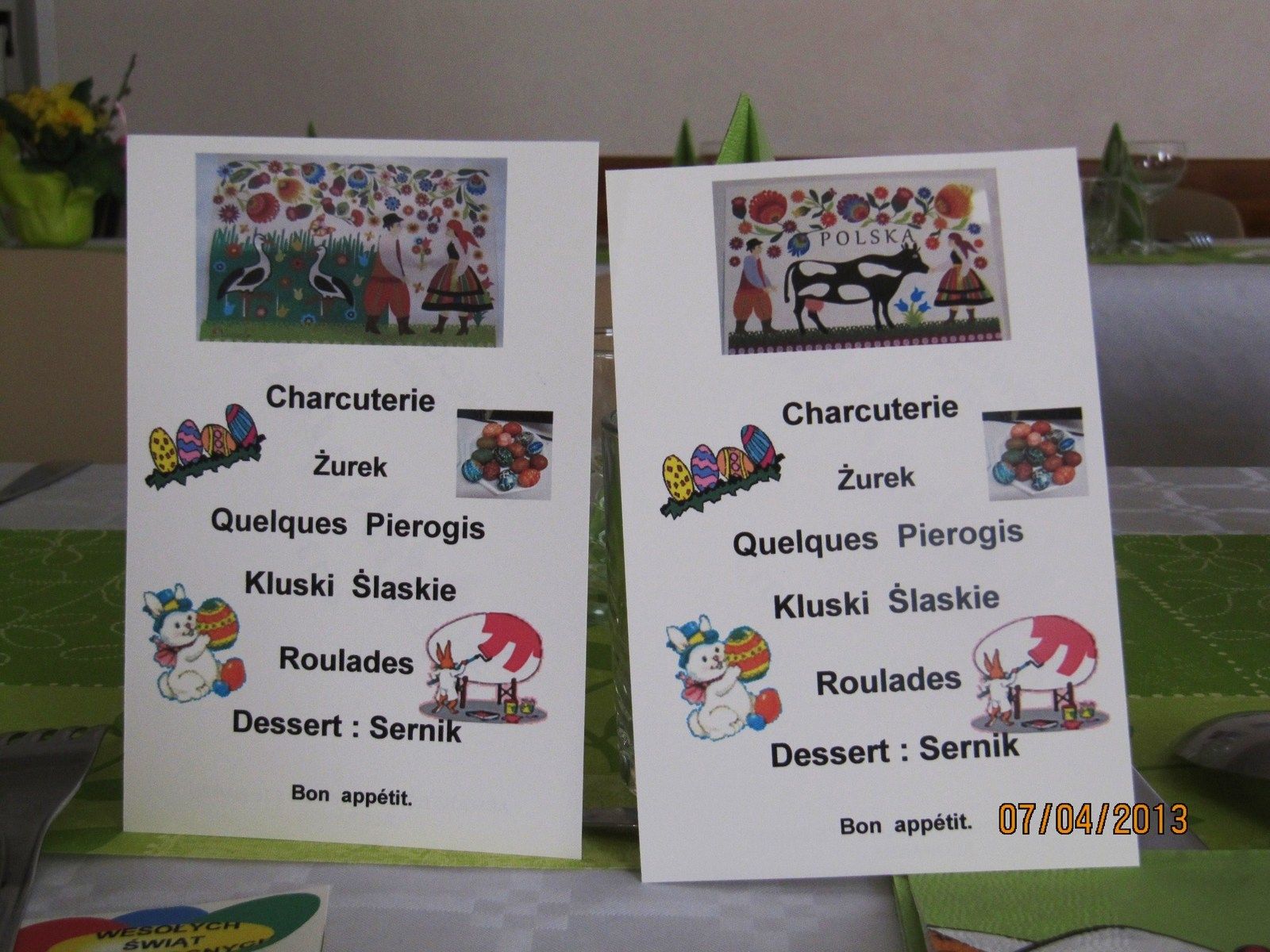 En 2013, pour Pâques, la bénédiction des aliments ou Święconka , chez les Polonais de l'association, Święta Barbara, a été célébré le dimanche 7 avril dans la salle du foyer polonais, au Chemin des Dames. C'est le prêtre M. Waldemar KRASNY qui a procédé à la bénédiction devant les nombreux convives présents.