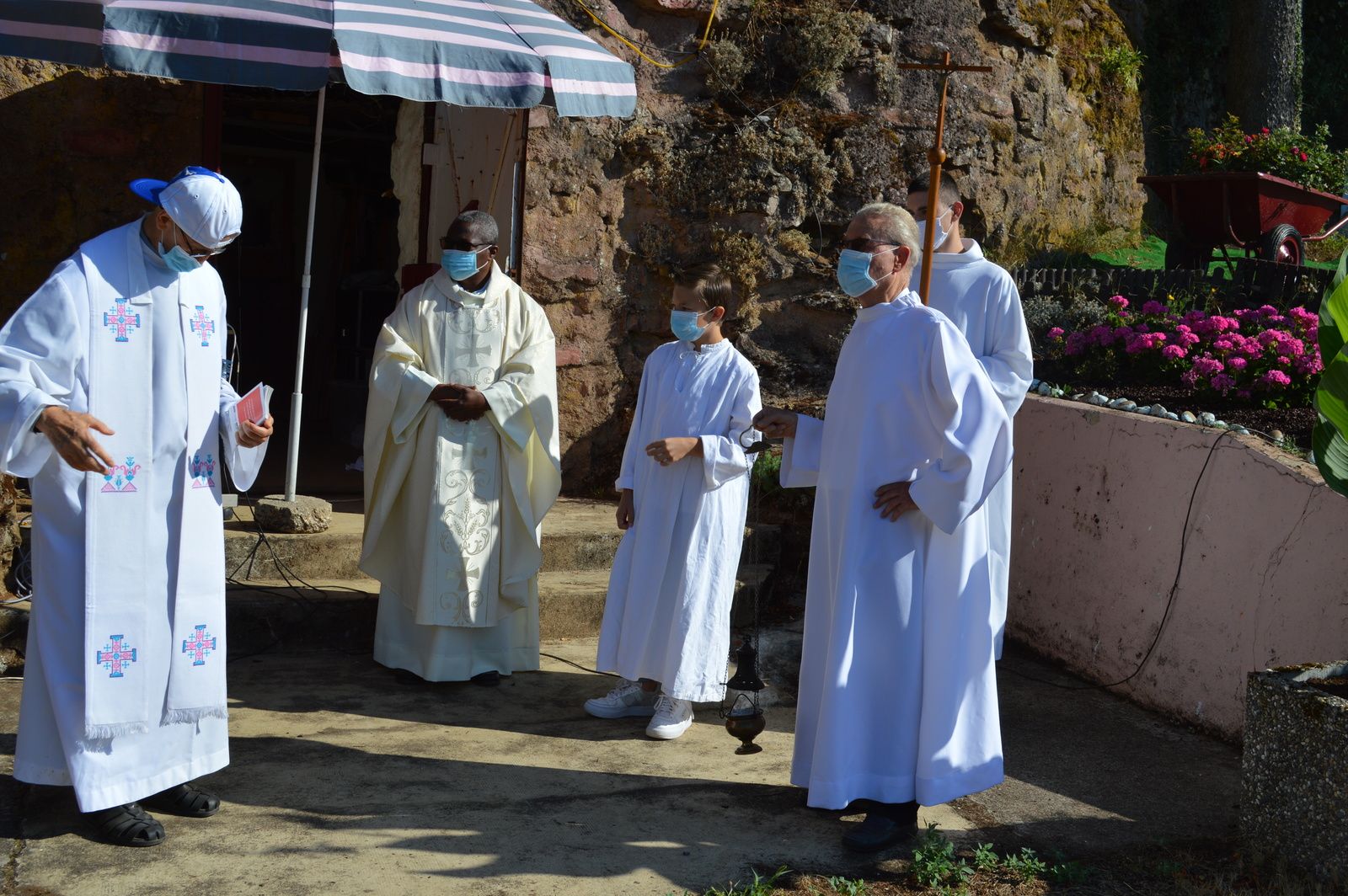 C'est le curé Hugues AGBENUTI et le prêtre polonais Waldemar KRASNY qui ont officié la messe de l'Assomption 2020, aidé par le Diacre Roland WENDLING devant près de 120 personnes sur le site ensoleillé de la grotte Notre Dame.....
