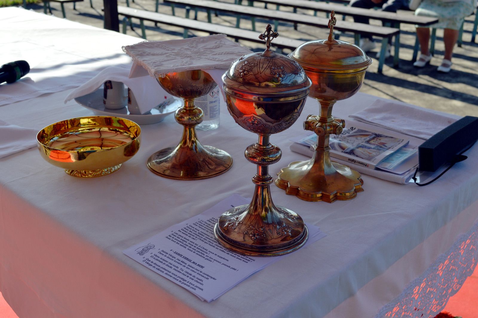 Comme chaque année quand c'est possible suivant la météo, la messe de l'Assomption le 15 août, dédiée à la Vierge Marie, se fait sur le site de la grotte Notre Dame d'Algrange. Cette année 2020 est encore plus particulière suite au COVID-19, qui empêche nombre de manifestations de ne se dérouler dans de bonnes conditions, mais avec des restrictions et des obligations (distanciations, masques, gel hydroalcoolique...)