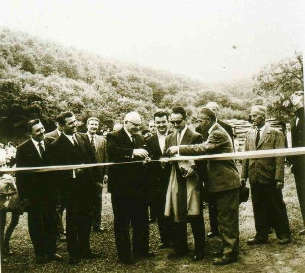 A l'occasion de cette inauguration, placée sous la présidence de Frédéric SCHULZ, maire d'Algrange, M. LEANDRI, directeur général des mines de l'ARBED, M. HARRY chef d'exploitation en retraite et KALBA, chef d'exploitation en exercice, la cité aux quatre mines avait revêtu un air de fête. A 13h30, le cortège s'est formé pour se diriger, musique en tête, au moniment aux morts pour y déposer une gerbe devant la stèle du souvenir. Précédé de la Clique des Sapeurs-Pompiers, dirigée par le lieutenant MICHEL et le chef de la Clique: Fernand SCHUSTER, le cortège, après avoir traversé les rues de la ville s'est rendu devant le carreau de la mine pour la réception des personnalités. Là ils leur souhaitèrent la bienvenue et toujours musique en tête, le cortège encore grossi par de nombreux sportifs venus de toute la vallée, prit le chemin menant au nouveau stade. A leur arrivée sur le terrain, tout le monde fut émerveillé à la vue d'une pelouse complétement recouverte d'un gazon vert et dru, qui surplombait la vallée. Les alentours immédiats du stade sont entourés de gradins naturels fait de rochers, ombragés par la présence de la jolie forêt qui donne sur le stade un panorama du meilleur effet.