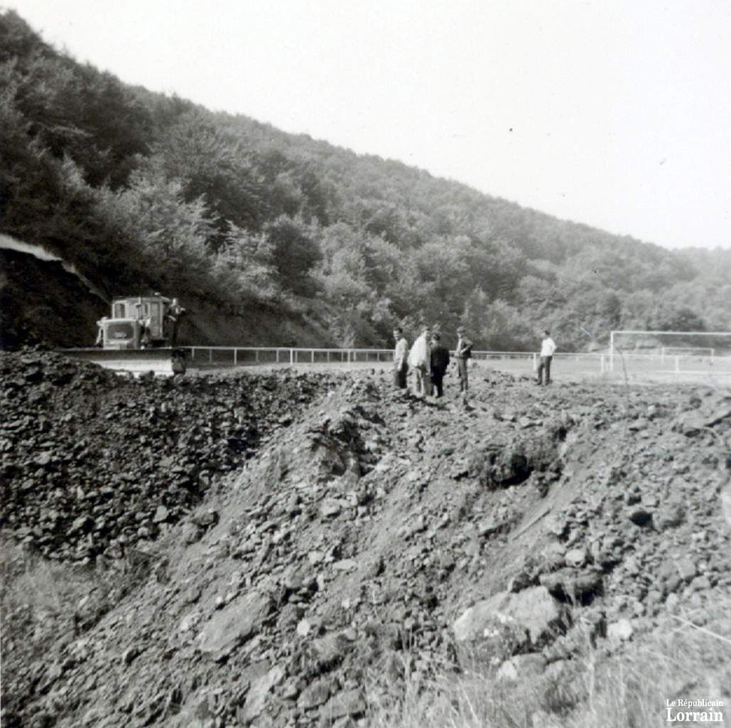 Cette belle réalisation qui vient enrichir la cité aux quatre mines, d'un magnifique stade, est surtout dû au courage et à la tenacité des ouvriers de la mine de Burbach qui, durant six années, ont consacré toutes leurs heures de loisirs, pour réaliser l'aménagement de ce stade. En effet, vers l'été 1958, un groupe de mineurs animé par MM. Tulio MAGGIOLI, Klaus KRISTMANN, GRAND-JEAN, FORMICA, MENGOZZI et RICCI ont décidé d'ériger un stade sur une colline rempli de crevasses et de rochers. Grâce à l'appui matériel de la mine, et à son chef d'exploitation de l'époque M. HARRY, ces courageux mineurs ont réussit à atteindre le but qu'ils s'étaient assignés.