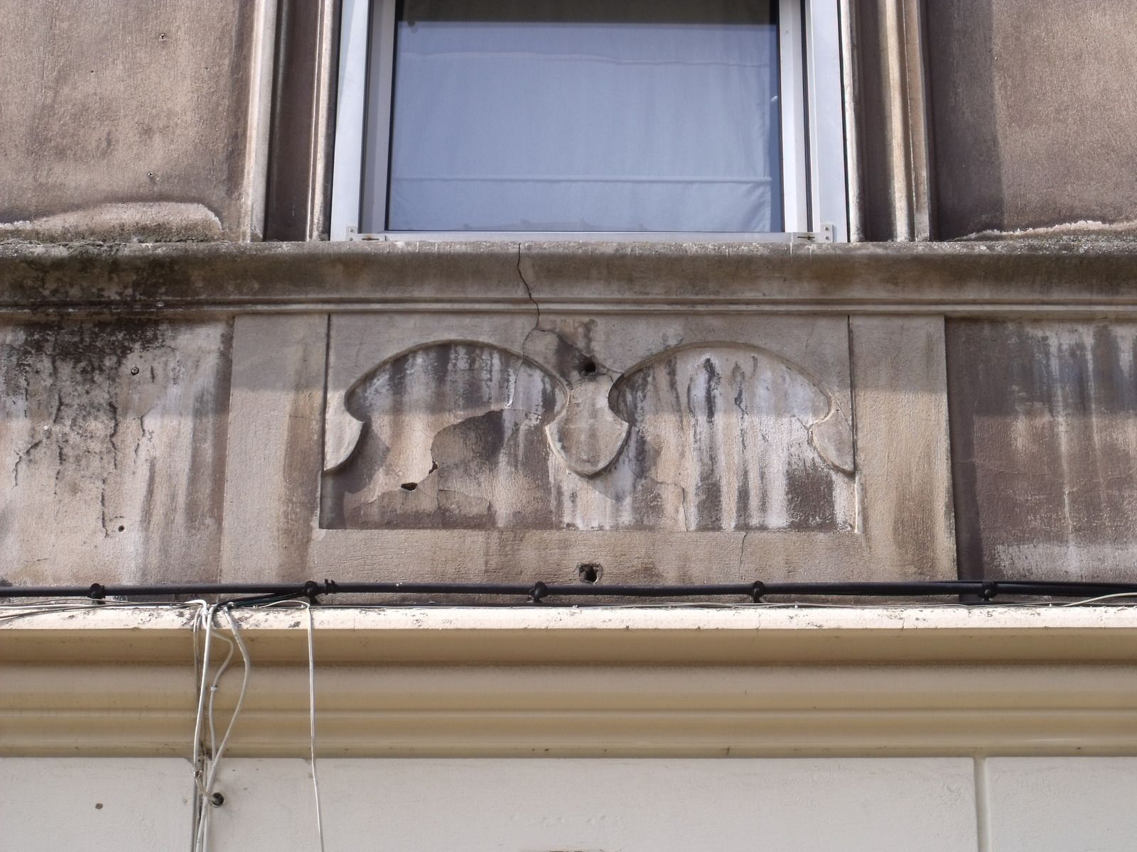 Motif en-dessous des fenêtres au premier étage, à gauche