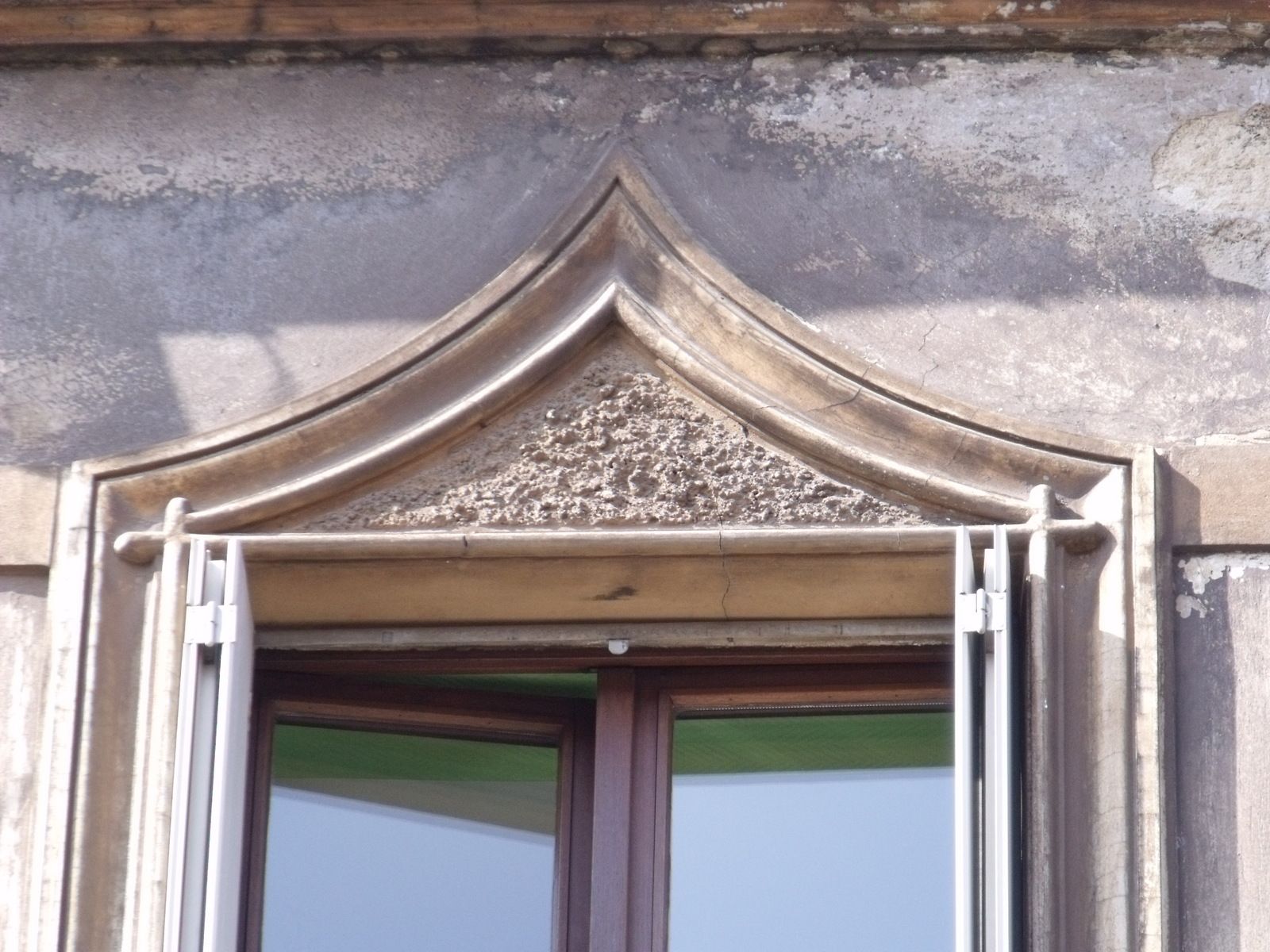 Motifs au-dessus des fenêtres au second étage sous la toiture.....