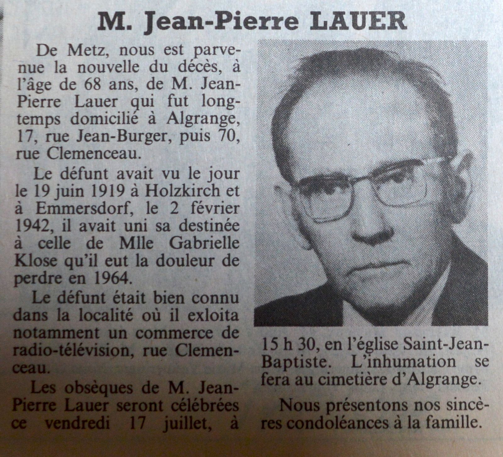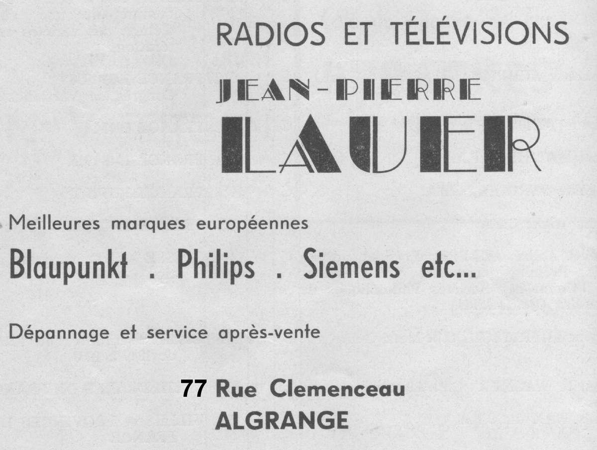 De 1946 à 1970, ce fut LAUER Jean-Pierre qui avait un magasin de Radio-Electricité... Il est décédé en juillet 1987