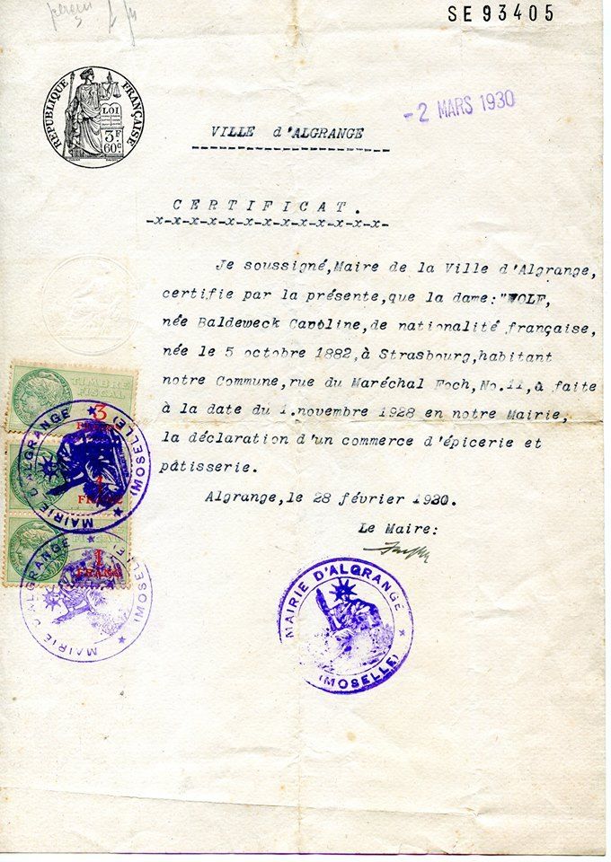 Dans les années 1930, c'était une épicerie et pâtisserie tenue par Caroline WOLF, puis dans les années 1950, c'était une pâtisserie-confiserie-glaces tenue par Mme MARION...
