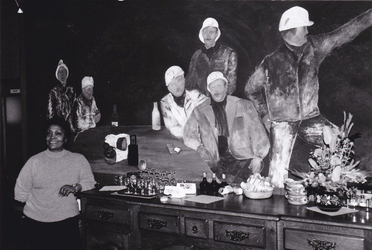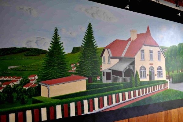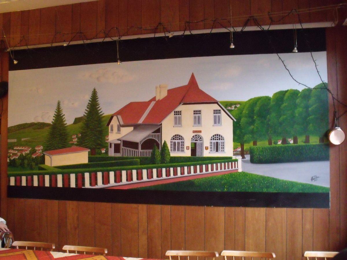 et dans le restaurant une fresque murale (mineurs) qui a été repeinte pour y mettre l'ancien café de la Philipsbourg .....